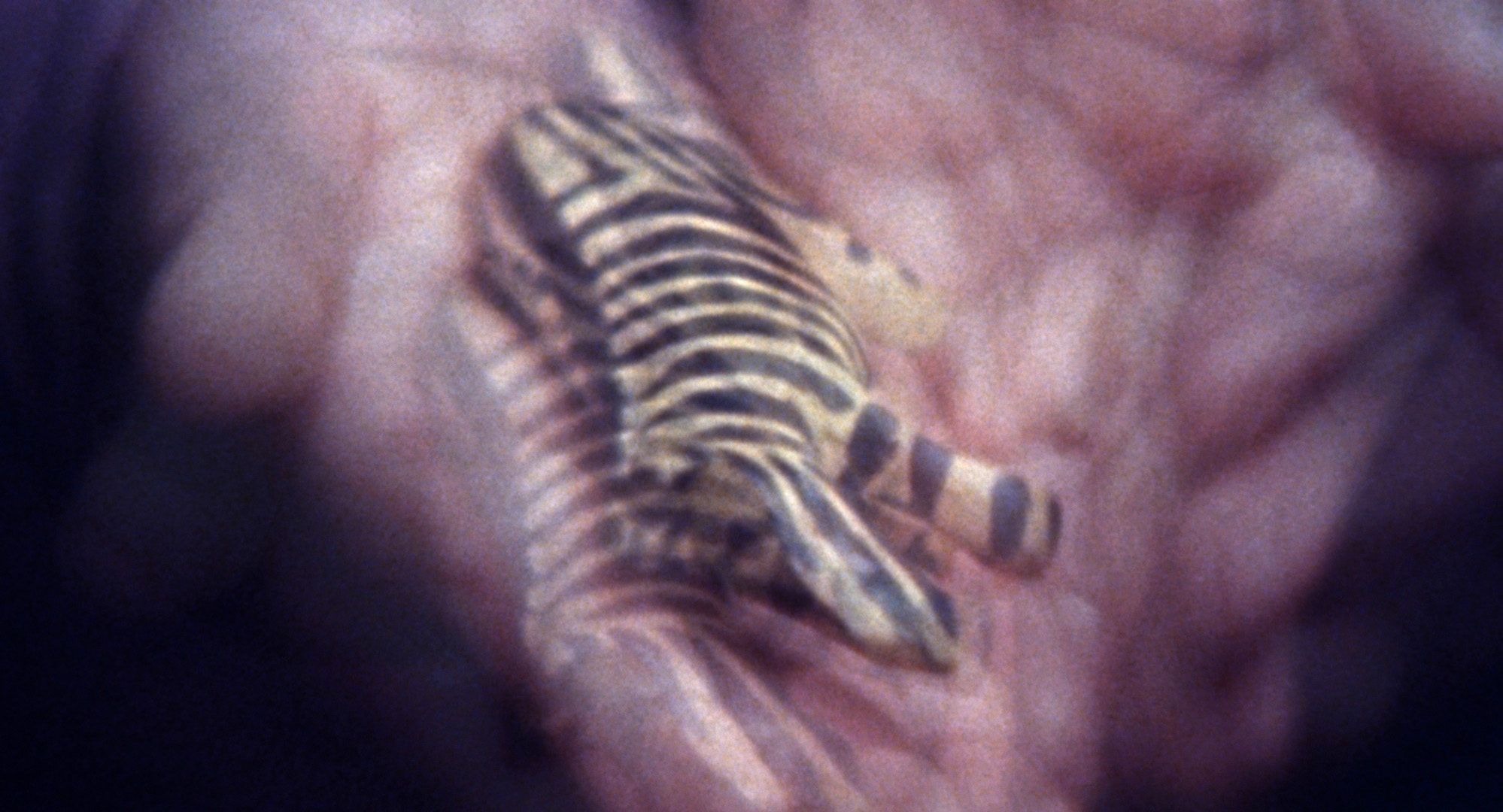 Eine Imitation von Bewegung, wie ein Baby das versucht, seine ersten Schritte zu machen, oder ein Außerirdischer der versucht, nicht aufzufallen. Fruhauf schafft hiermit vielleicht den zentralen prähistorischen Film nach Kubelka, das Material bricht, assimiliert sich, wird zur Metapher seiner selbst; seine Konstitution muss sich neu erfinden, man beobachtet wie sich eine Synthese aus der alten Form und ihrer daraus resultierenden, also die neu erfundene, Form bildet. Und der Flickenteppich beendet dann die Symbolik - Schwarzblende, Arnulf Rainer winkt.